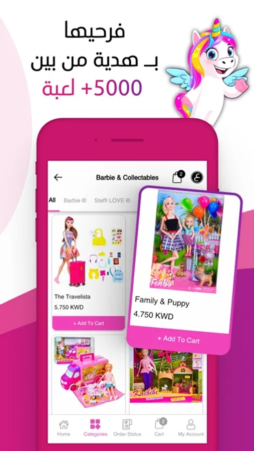 Unicorna Girl Toys App helps you achieve that goal by offering the largest variety of toys for your little girl, 1-hour delivery, affordable prices, and a little gift from us with every order to maximize your daughter’s joyful experience!