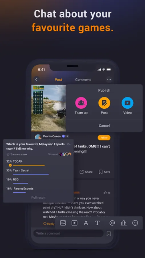 - Share your thoughts or ask your questions about all things Esports and video games. You can find a variety of content: