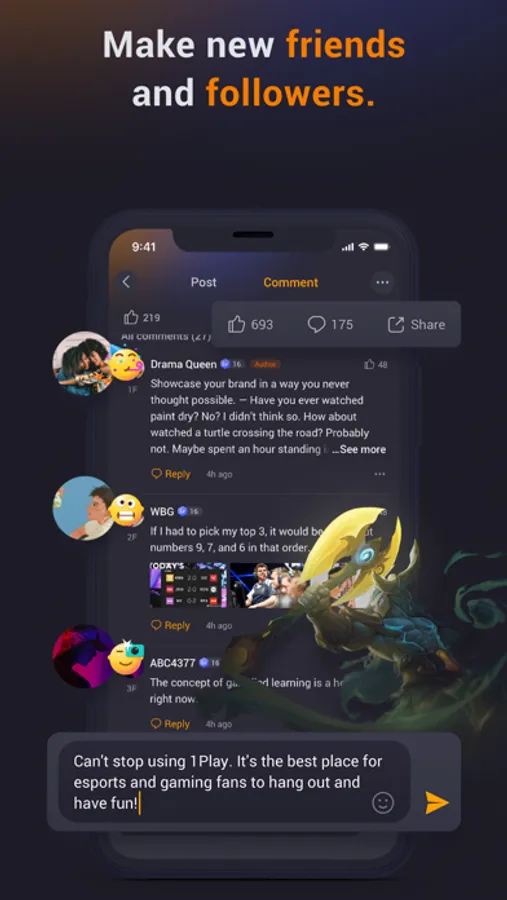 1Play is THE dedicated social media platform for Esports and video games. You can post your thoughts, share memes, tips and guides, Esports gossip, and find friends to climb the rank ladder together! You can also get the latest news, match results and statistics.