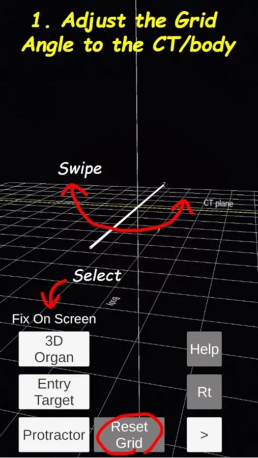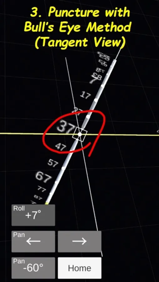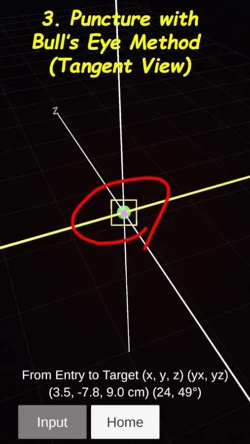 - A 3D virtual protractor or a target positioned relative to an entry point for needle puncture using the Bull's eye method can be also easily displayed.