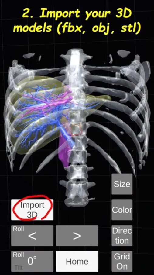 - 3D organ models (FBX, OBJ, STL) can be easily imported and placed from your mobile phone’s folder without pre-processing. The position, size, and color can be easily adjusted.