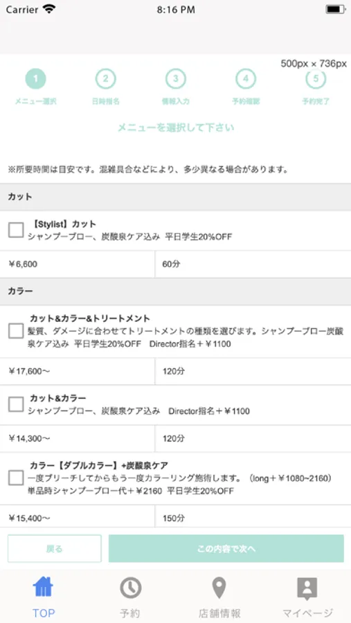 予約状況の確認やキャンセルがマイページ上から行えます。スタッフの登録が出来るので前もって担当者を登録しておけばマイページからスムーズな指名予約が可能です。