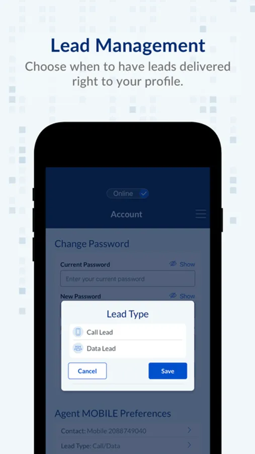 •Control access to when and what types of leads you’d like to receive with an availability toggle