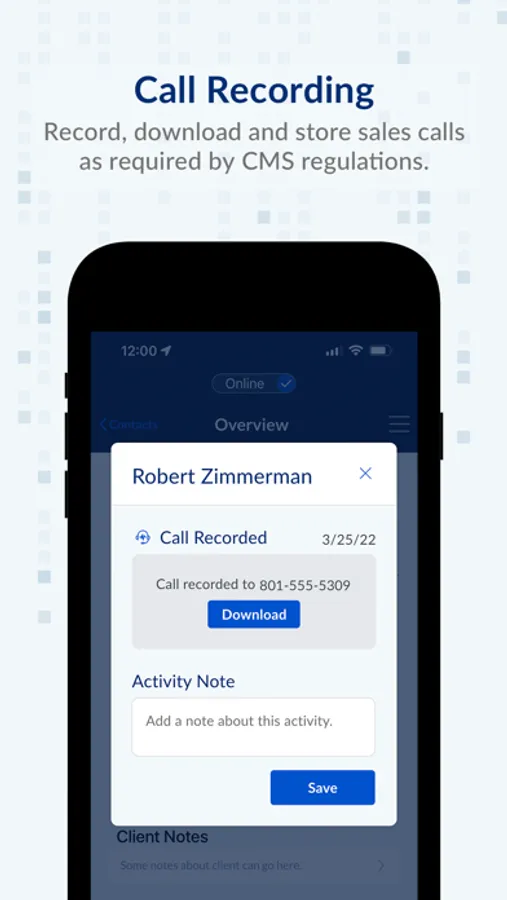 •Compliantly record, download and store inbound and outbound calls according to CMS regulations