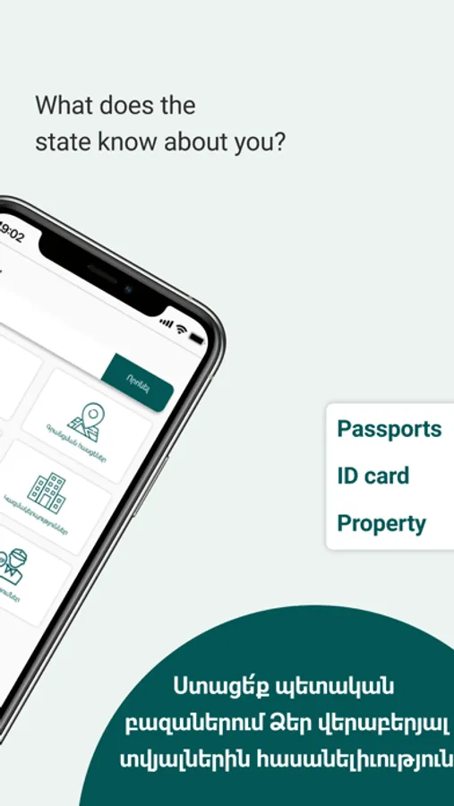 Each citizen of the Republic of Armenia has the right to get familiar with their data collected, processed and stored by state and local self-government bodies. This Application provides the opportunity to exercise this right.