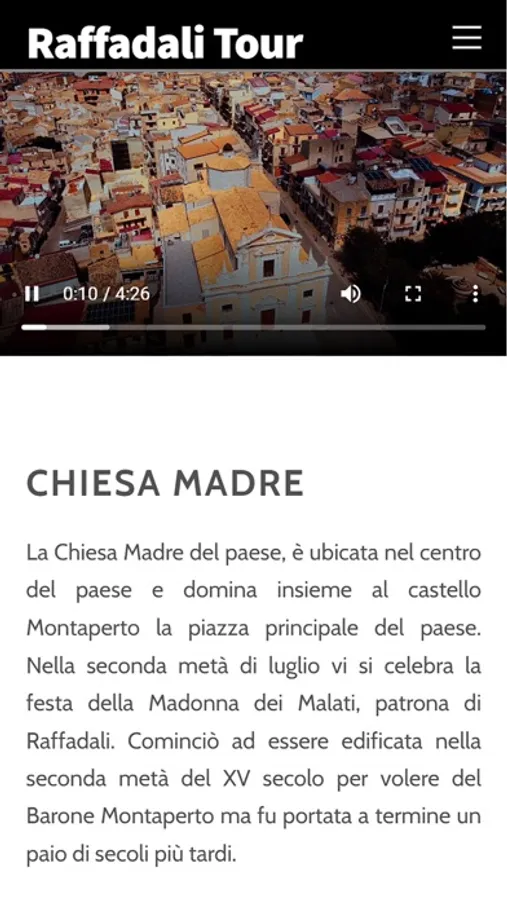 L'App permette di visualizzare in modo veloce ed intuitivo i contenuti web relativi a Raffadali e Aragona, quali video, foto, testi e punti d'interesse.