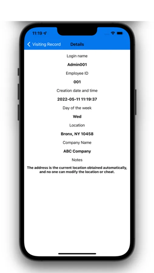 Automatically locate and punch in, which can record the time and place of all staff's daily work attendance, and the attendance punching data is stored in the cloud database.