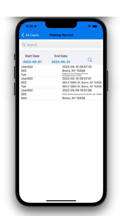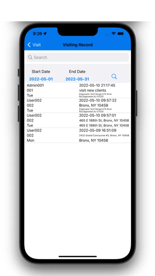 Multi-point visit check-in, multi-point multi-time check-in, can record the time and place of multiple field check-ins of all personnel, and the check-in data is stored in the cloud database.