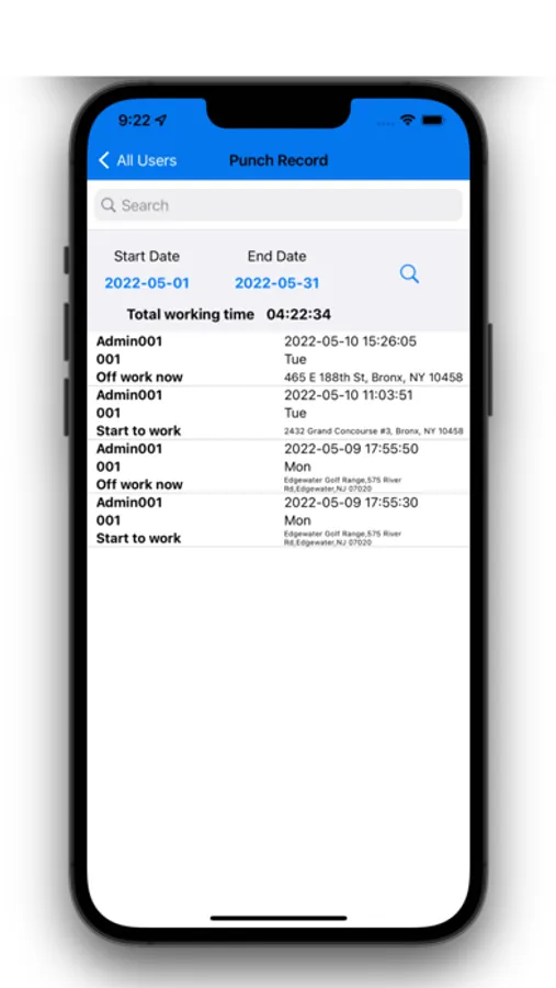 The enterprise punch-in APP provides an easy-to-use attendance clock for small businesses, small companies, and small teams to record the commuting and visiting check-ins of all personnel. Data storage cloud is safe and worry-free. Automatically calculates the total hours worked for each employee.