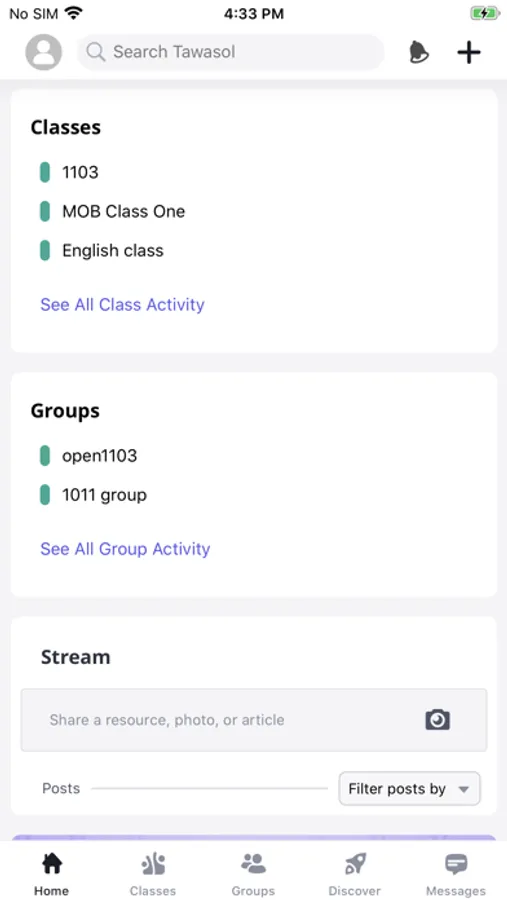 Tawasol empowers teachers to connect and extend their class outside of school. It includes communication tools to facilitate posts and messages, quiz creation, and the sharing of content and digital assignments. Teachers can connect with peers and find inspiration for their next lesson by exploring the Discover area, browsing Spotlight, or following hashtags in tawasol.