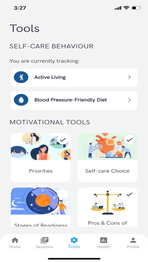 • Motivational tools to help initiate and maintain selected self-care behaviour.