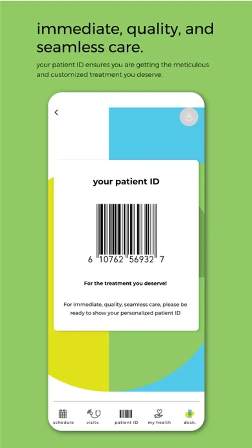 The dock. app is also your ticket to immediate, quality, and seamless care with your individualized patient ID. Easy access to your patient ID ensures you are getting the meticulous and customized treatment you deserve with seamless check-in and thorough documentation throughout your entire appointment.