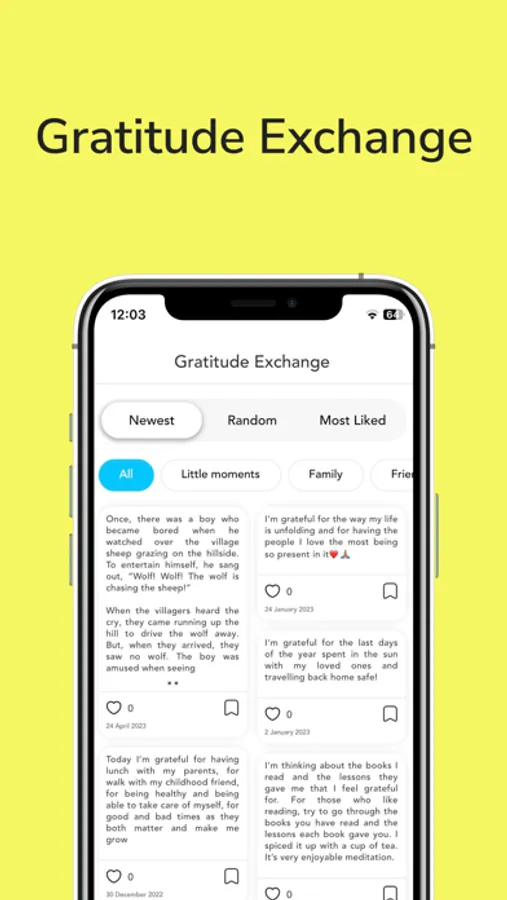 Experience and exchange gratitude with others in form of stories, write your own or read stories from other people, all done anonymously.