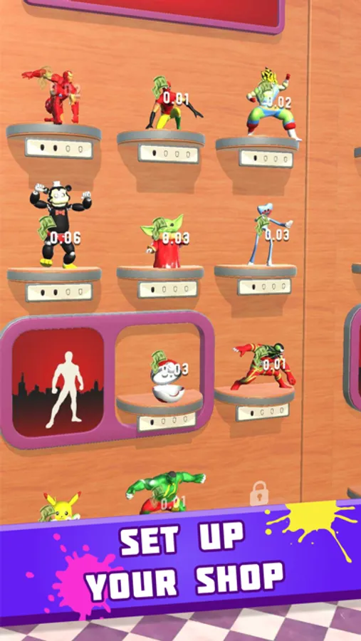 Fill your Store with all your finished Figurines and raise money to open the next Figurines, new plinths/colours/textures/...