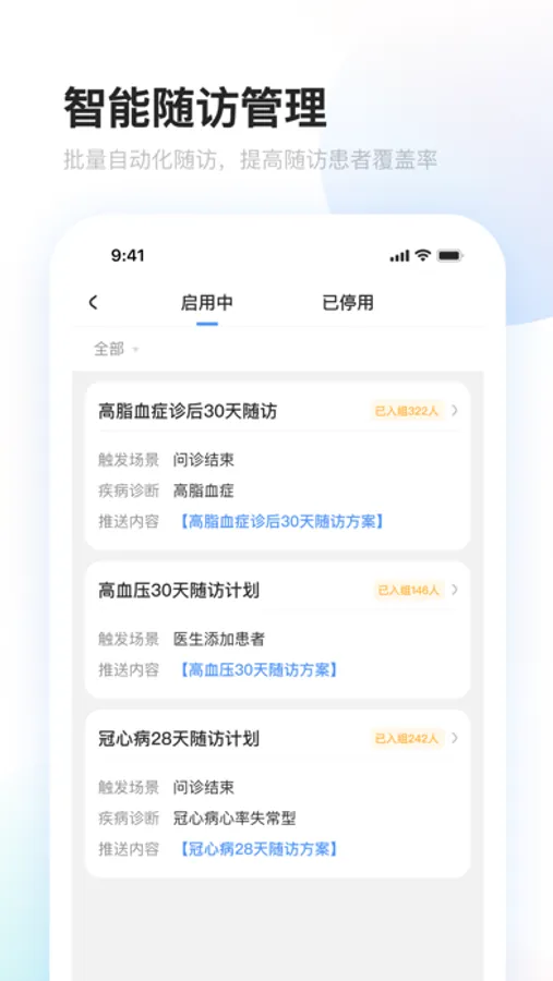 上药云健康互联网医院医生版是上海医药旗下“互联网+”医药平台“上药云健康”着力打造的互联网医院,致力于为医生提供专属云诊室,扩大优秀医生的服务半径,便捷实现线上多点执业。患者能够高效进行线上复诊,提高医生诊疗效率,改善医患沟通,优化患者就医体验,提高诊疗依从性,并对慢病患者进行规范化病程管理。