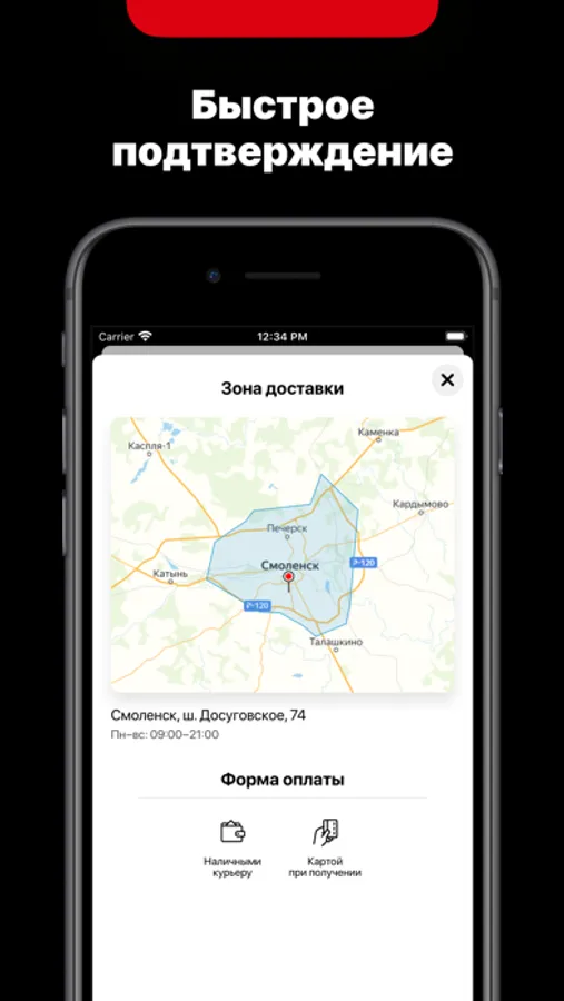 — Быстрый заказ с мгновенным подтверждением через приложение.