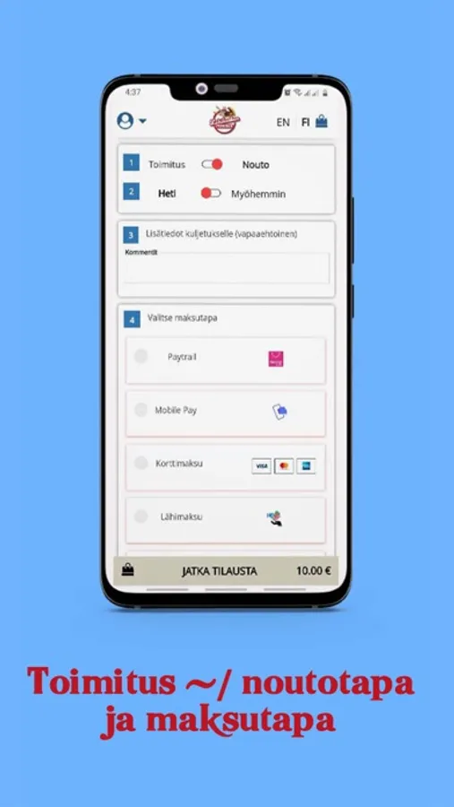 Sovelluksessa sinulla on mahdollisuus valita erilaiset maksutavat. Meillä on käytössä: