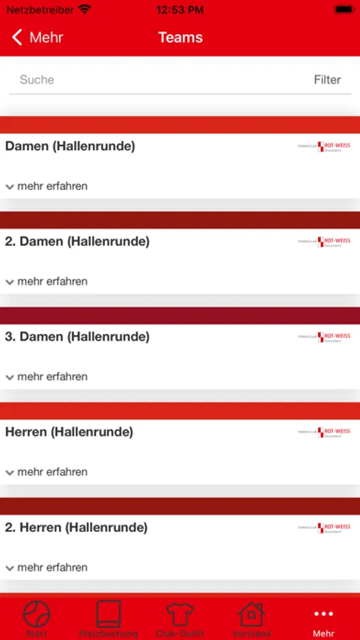 Ab sofort bieten wir Ihnen die Möglichkeit, die App des TC Rot-Weiß Düsseldorf e.V. herunterzuladen. Dort können Sie sich u.a. über Aktuelles aus unserem Club informieren und auf dem Laufenden bleiben, Termine einsehen, Kontakt mit anderen Mitgliedern sowie dem Vorstand aufnehmen, die Platzbelegung einsehen und auch Plätze buchen. Wir laden alle Mitglieder, Interessierte und Fans des TC-Rot Weiß ein, interessante Einblicke und Wissenswertes über den Club mit Hilfe unserer App zu erhalten.