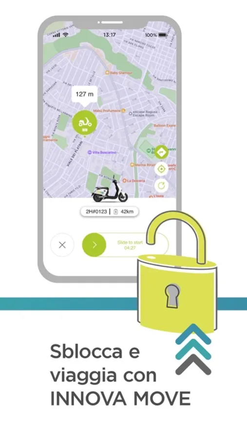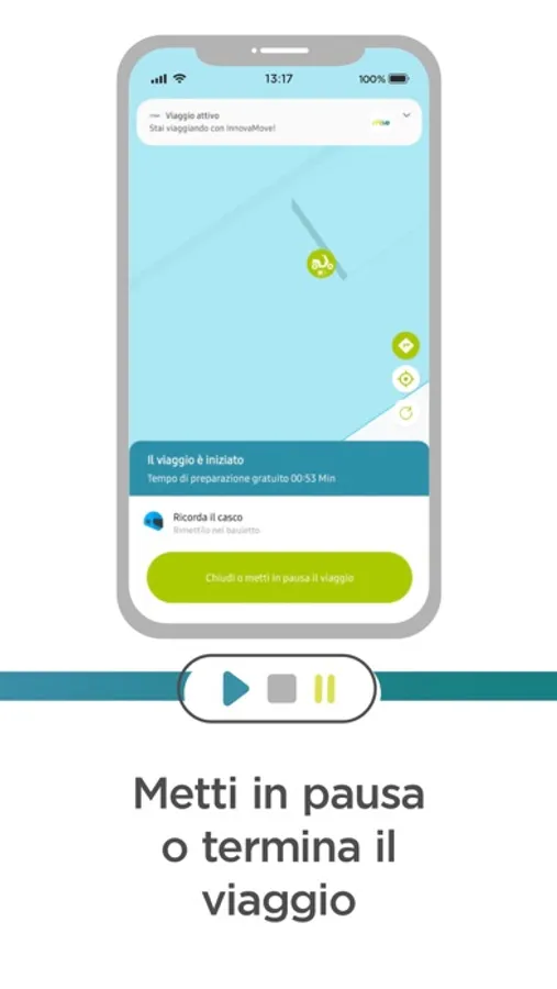 Hai raggiunto l’E-scooter prenotato? Sbloccalo tramite l’App e inizia il tuo noleggio. Se invece hai inquadrato il QR Code o inserito il codice alfanumerico il tuo noleggio partirà subito. Casco allacciato, bauletto chiuso e cavalletto tolto? Sei pronto per partire! Se dovessi riscontrare parti danneggiate o malfunzionamenti comunicalo subito tramite la sezione dedicata dell’App.