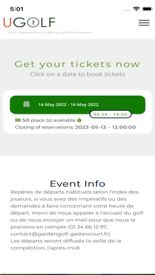 Recherche, consultation et réservation d'événements sportifs (et autres).