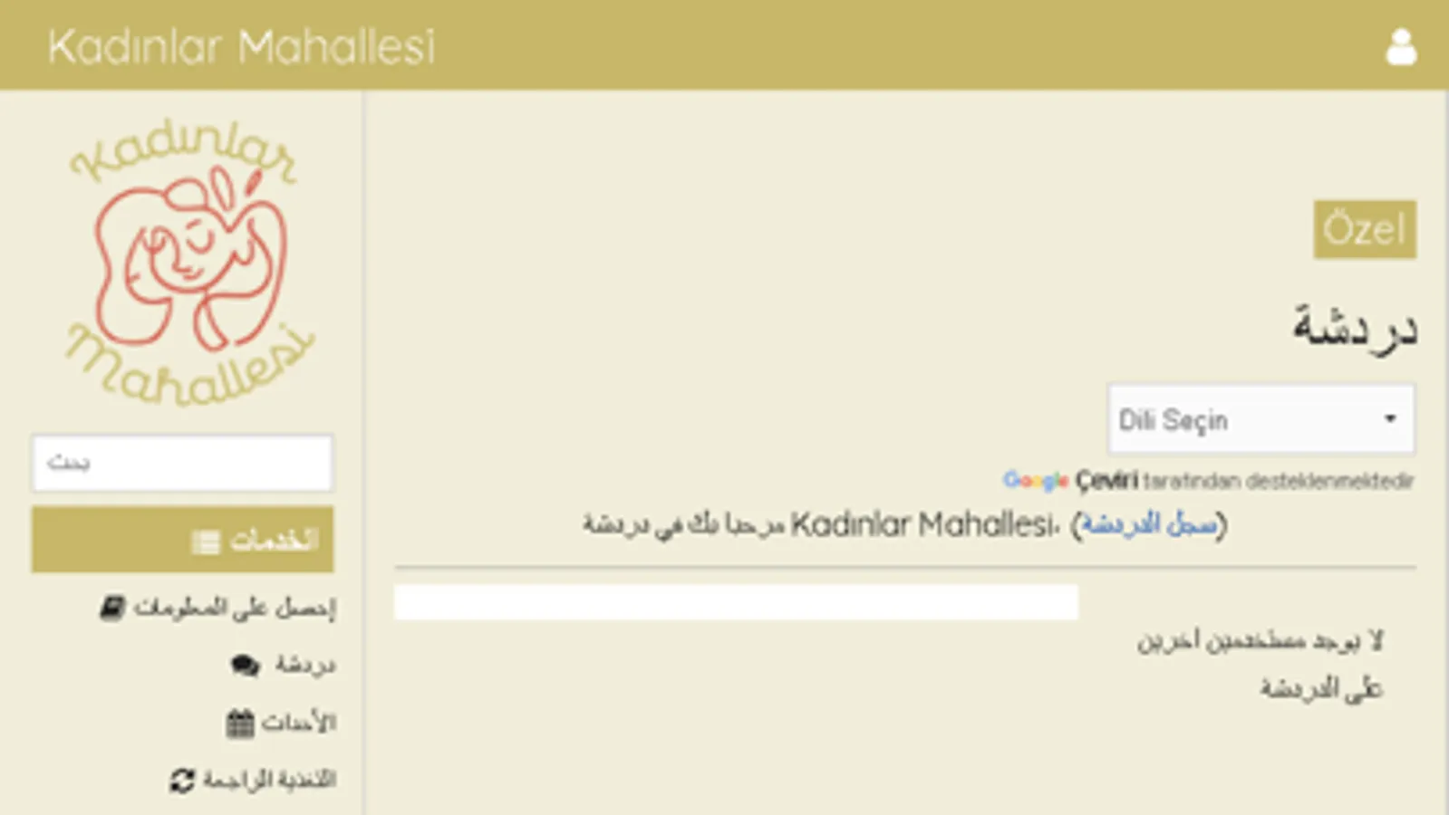 Kadınların Mahallesinin sohbet odası her dilde tercüme altyapısına sahip, farklı dillerden gelen kadınlar bu sayede rahatlıkla sohbet edebiliyor.