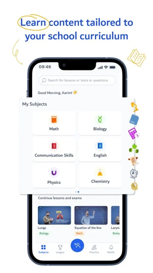We cover a wide range of academic subjects. Examples include: English, Mathematics, Biology, Chemistry and Physics. But that’s not all - we also tailor your learning journey based on the country curriculum that you choose.