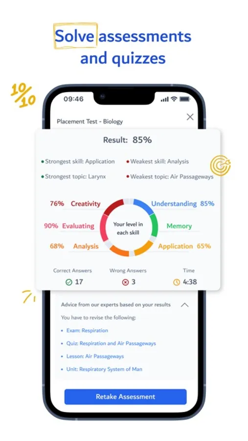 - Access information on your performance in all subjects and recommendations for improvement