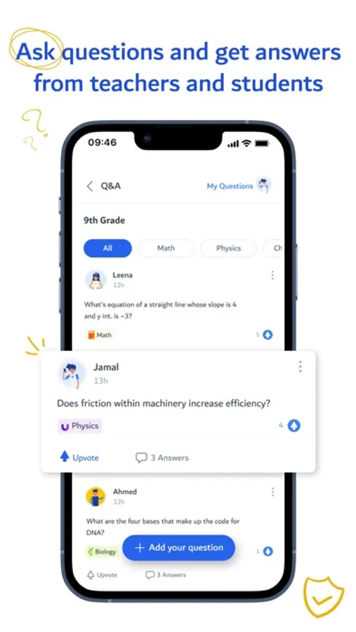 - Ask questions and get answers from teachers and students