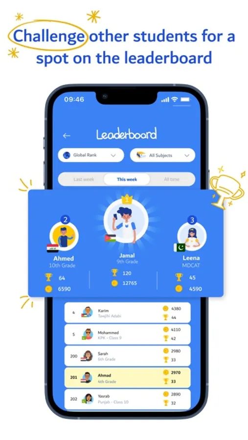 - Challenge players in the Abwaab League to compete for a spot in the leaderboard