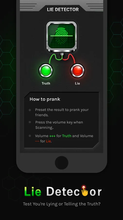 Ask question or hold finger on the fingerprint scanner until lie detector simulator app scans and calculates the result on Truth and Lie Detector App.