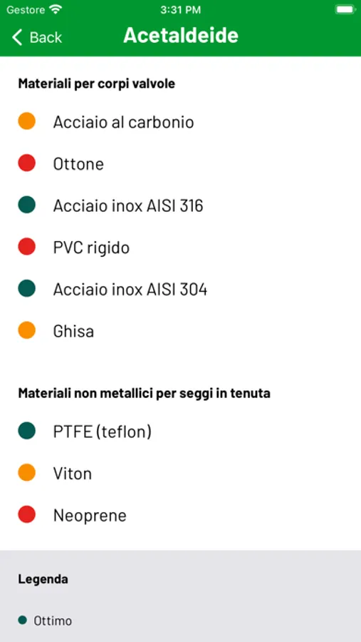 L’app dispone anche di una sezione dove viene mostrata una matrice di compatibilità dei materiali.