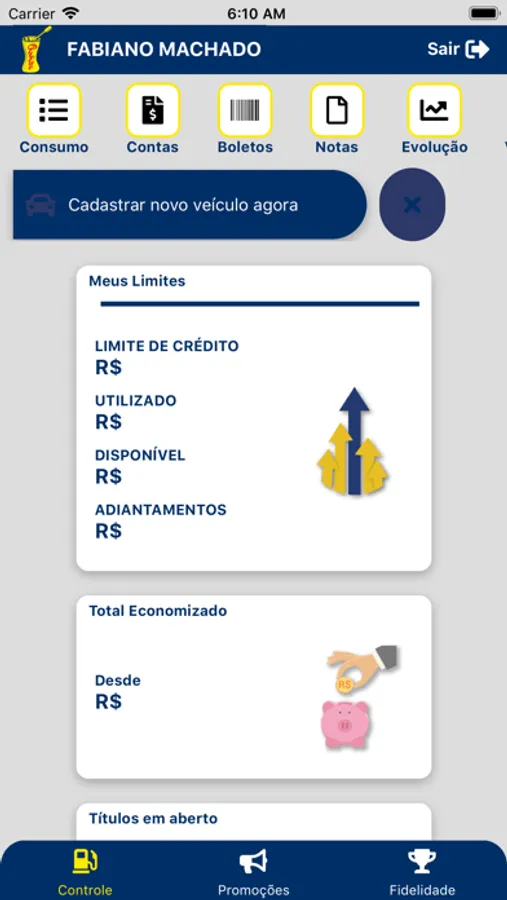 Aplicativo de fidelização, controle financeiro e de frota de nossos clientes