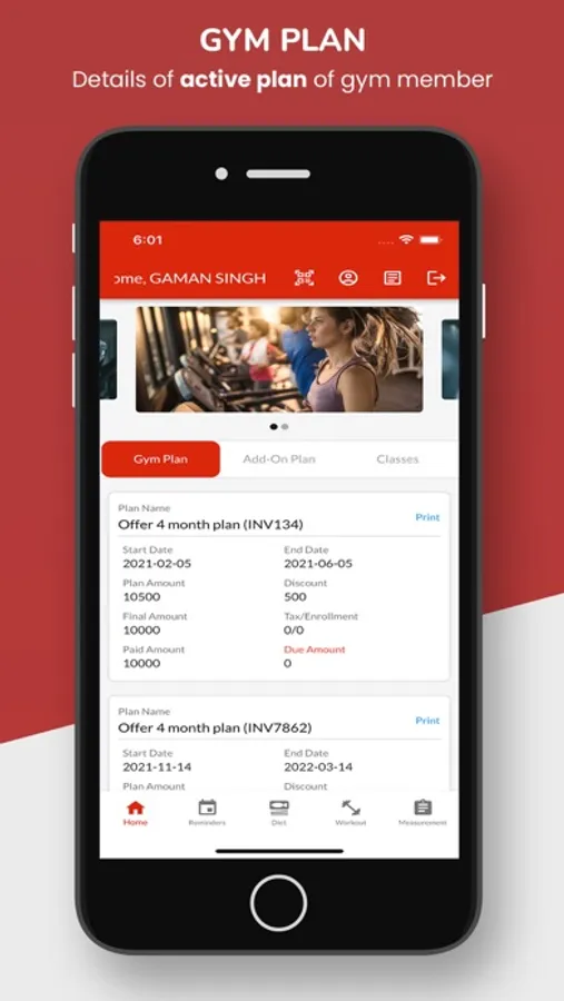 Exclusive gym app for Enigma Fitness Gym members, Gym member can login to the app with login details provided by gym at the time of membership registration at gym branch. Members can find their plan details, their measurements, members can check their diet plan and exercise plans etc.