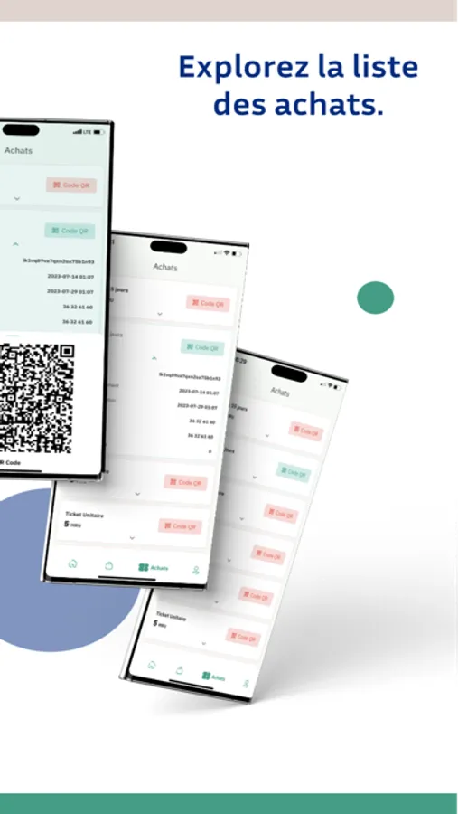 5. Une confirmation d’achat vous est envoyée par sms. 6. Votre titre acheté est alors consultable et utilisable depuis l’onglet “Achats” en vous appuyant sur l'onglet Achats en page d'accueil