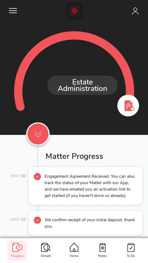 With any legal service, you’ll want visibility over the matter without having to pick up the phone! In a world of mobile devices, we now expect the ability to review progress at a time that is convenient to us. This app has been designed with features that keep you updated by providing live matter information. Whether you simply want to check the quote or if you wish to keep track of progress, this is the app for you. You’ll be able to clearly see each step in the legal matter so you understand the process.