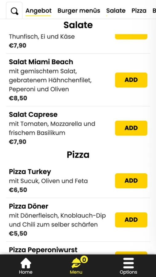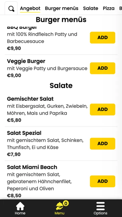 - Durchsuchen Sie die Speisekarte des Restaurants und sehen Sie sich alle anpassbaren Optionen im Voraus an