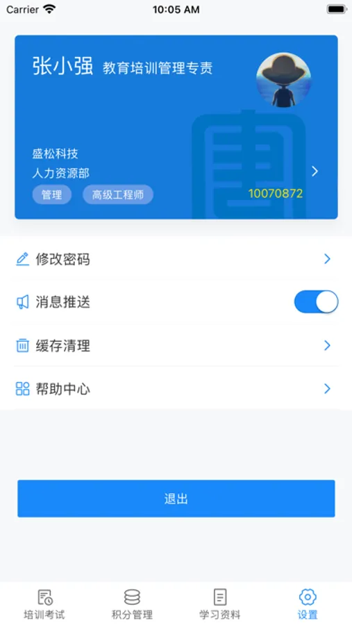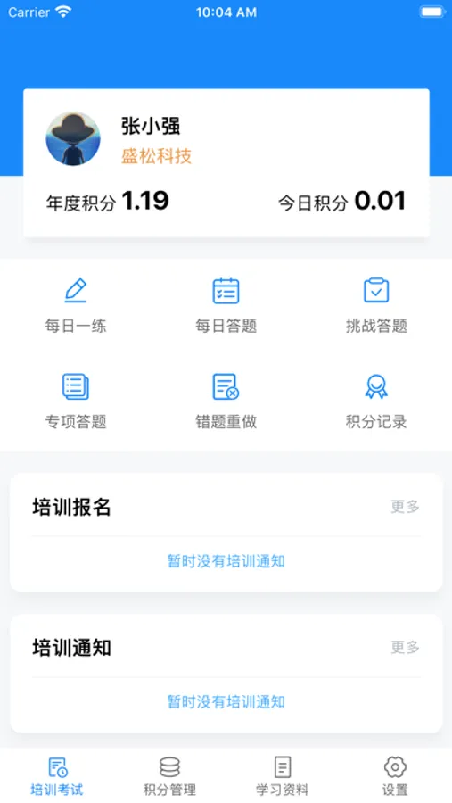 通过手机APP开展日常答题,接收线下、线上培训通知并参加培训,参加线上专业考试(调考),分享学习资料或查阅相关学习资料,了解积分累计及专业学习积分排名情况,查看与培训有关的内部新闻或消息。