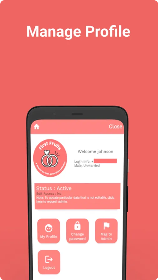 First Fruits is focused on helping first generation believers in finding a suitable life partner. First Fruits as an initiative, conceived out of the burden that God's children shouldn't be unequally yoked. The Vision of First Fruits is to be a platform in making matches for First Generation believers and for those who are willing to marry First Generation believer, thereby building up Godly families in establishing the kingdom of God on earth as it is in Heaven.