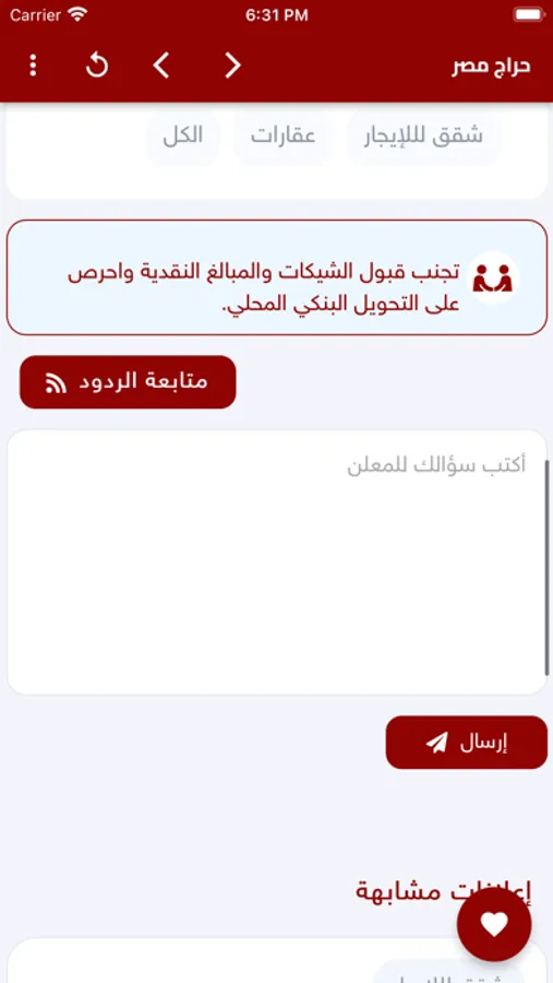 سواء كانت مستعملة او جديدة فى عديد من الاقسام مثل السيارات و العقارات و الاجهزة و غيرها من الاقسام و يستطيع الزوار الاطلاع على تلك الاقسام و المنتجات التى بداخلها و مراسلة صاحب الاعلان للوصول لذلك المنتج بعد ذلك يقوم المشترى بدفع العمولة للتطبيق من خلال احد خدمات الدفع الالكترونى المتوفرة