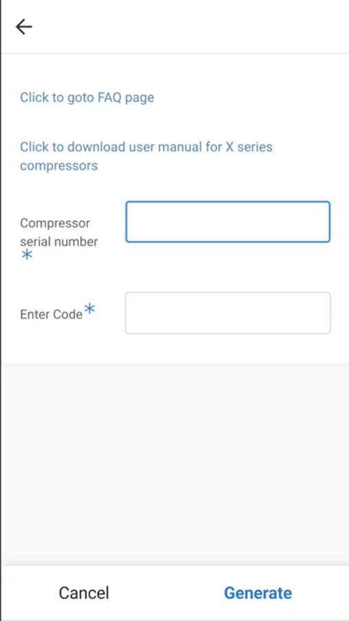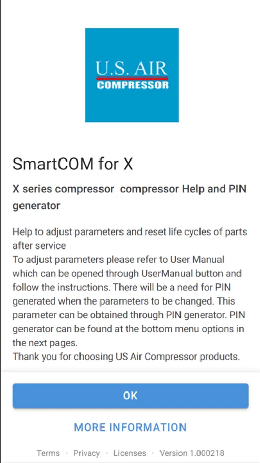 Pin generator and user manual for /X series Us Air Compressor.