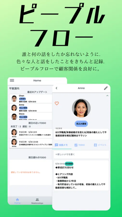 People Flowは顧客との対話履歴やTODOを管理するアプリです。