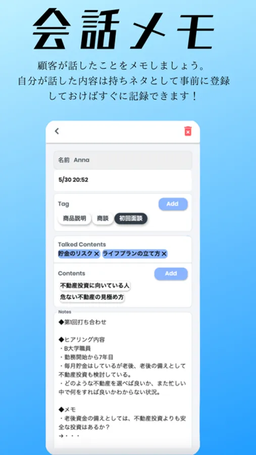 一人一人に対して丁寧に話したことを記録し、TODOを管理することで