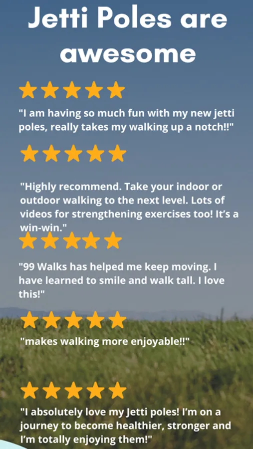 Transform your fitness and your life through walking with Jetti Poles. Enjoy the brand new app to make Jetti walking even more fun and effective, and designed to maximize your Jetti fitness journey. Walking with Jetti Poles is shown to burn up to 56% more calories than walking without.