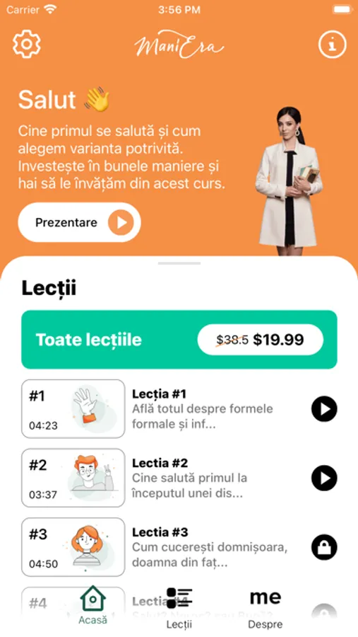 - Obții cunoștințe legate de formulele formale și informale de salut, normele de prezentare, gesturi, etc;