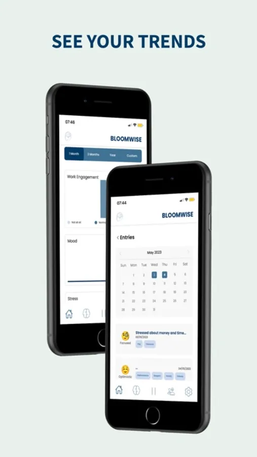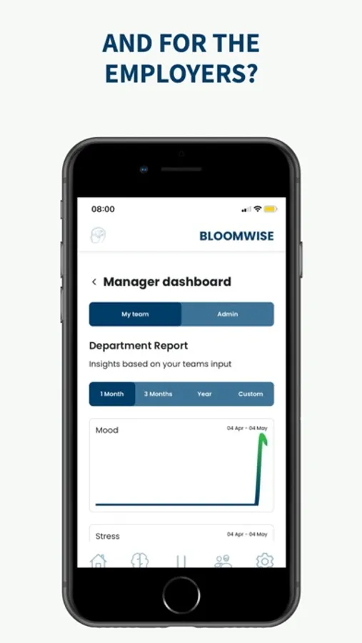 The Bloomwise Workplace Mental Health app gathers key metric data of workplace health and mental health. Employees can track their mood, stress, and workplace engagement on a daily basis. This can help them identify valuable trends to better manage their workplace mental health.