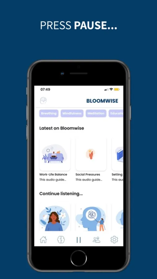 When feeling stressed or overwhelmed while at work, employees can access the pause button which gives them the opportunity to engage in four different stress-reducing exercises.