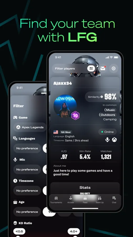 Playing with randoms just got a whole lot less random! With our LFG feature, you can now browse player profiles using various filters such as gender, location, age, mic preference, and more. You can then easily connect with them by swiping right and invite them to join your tournaments! You can chat with your matches and new teammates directly in the Z League App.