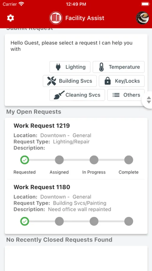 The facility assistant is a mobile application that empowers through interactive conversation, the ability for users to easily report, track and find service requests that have been submitted.