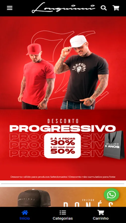 Comprar produtos originais da Longuinni é fácil e seguro! Instale o app da marca que todo mundo quer usar no momento e fique por dentro de promoções e lançamentos em roupas, tênis, Bonés, Relógios entre outros artigos para o seu estilo. Com a Longuinni você tem a praticidade de trocar sua compra caso não lhe agrade
