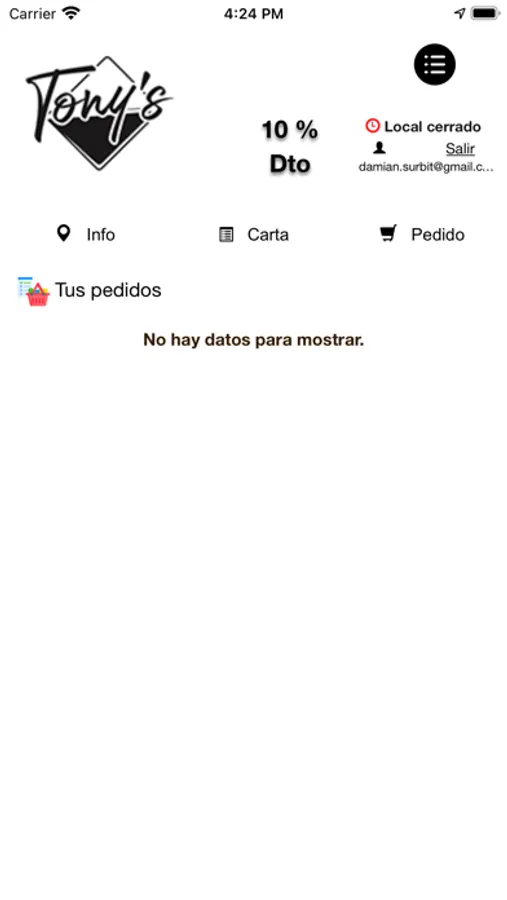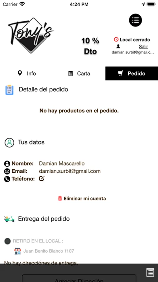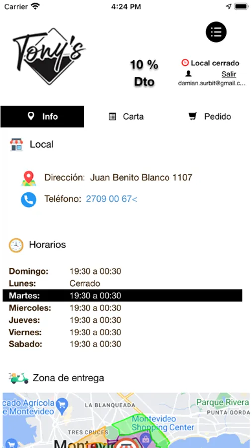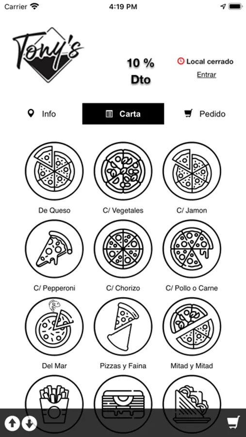 Aplicación oficial de pedidos online Tony´s Pizzas